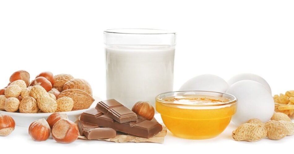 En sık rastlanan alerjik gıdalar inek sütü ve tavuk yumurtasıdır. Bunların yanında buğday, kabuklu deniz ürünleri, çikolata, soya, çilek, mısır, mercimek fasulye, yağlı kuruyemişler, baharatlar gibi besinlerde alerjiye sebep olabilir.